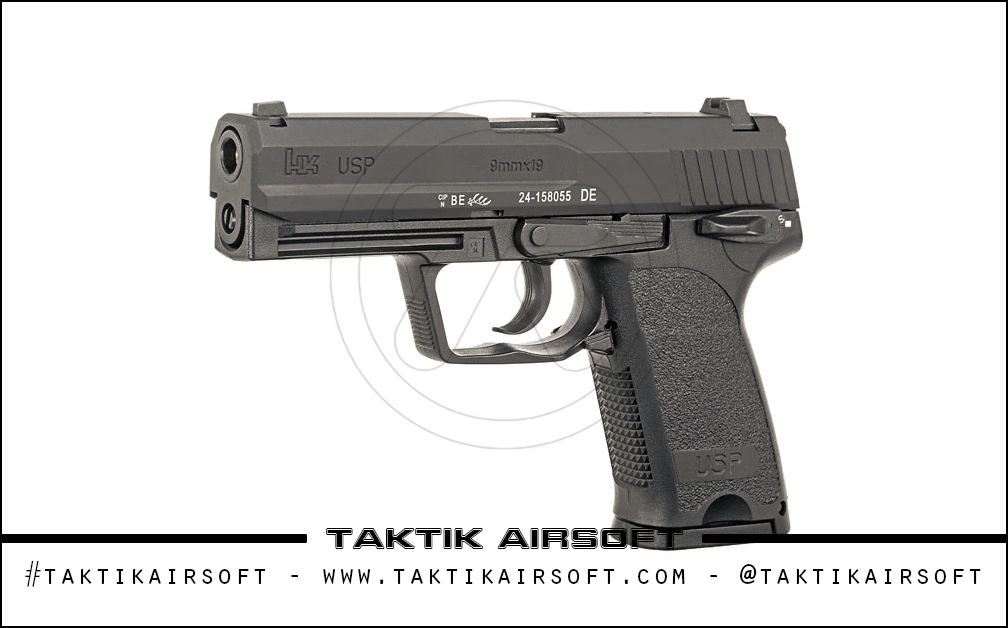 Uma das armas mais famosas do renomado fabricante de armas de fogo H&K, a USP (Pistola de serviço universal) foi adotada como a pistola de serviço do exército alemão, junto com uma multidão de outros exércitos, agências de aplicação da lei, etc. Um ícone dos anos 90, sua versão airsoft replica todos os detalhes e particularmente as marcas registradas com alta fidelidade, este produto sendo totalmente licenciado pela Umarex. Corrediça de liga de alumínio e estrutura de polímero mantém o peso baixo, enquanto o ajuste de salto externo facilita a vida do usuário.