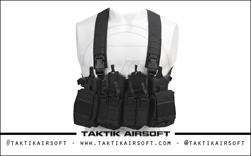 基于 D3CRX 设计的胸部装备, 该装备可以携带大量火力,同时保持轻便且易于佩戴. 4 插入前面允许用户携带 4 M4弹匣, 伴随着令人印象深刻的 4 还有手枪弹匣. 装备两侧的小袋允许用户在需要时携带额外的设备.